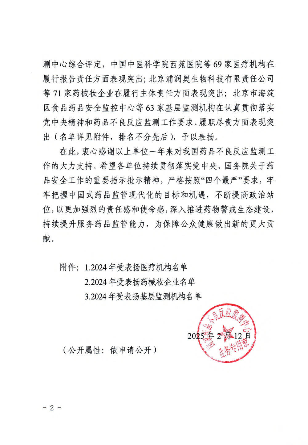近日,国家药品不良反应监测中心印发《关于表扬2024年全国药品不良反应监测评价单位的通知》(监测与评价办〔2025〕9号),对2024年全国药品不良反应监测评价工作中表现突出的单位予以通报表扬。敷尔佳始终积极响应并高效履行主体责任,凭借在药品不良反应监测工作中取得的显著成就,荣获此项国家级表彰。下一步,我们将以此为契机,贯彻执行全国药品不良反应监测评价工作的整体布局与指导方针,坚定不移地履行好监测评价的法定职责。