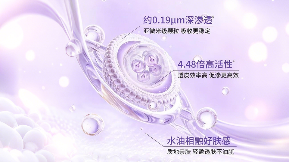 精准递送活性成分,精华吸收度提高4.48倍↑ 提高原料稳定性/渗透率,提升紧致抗皱功效