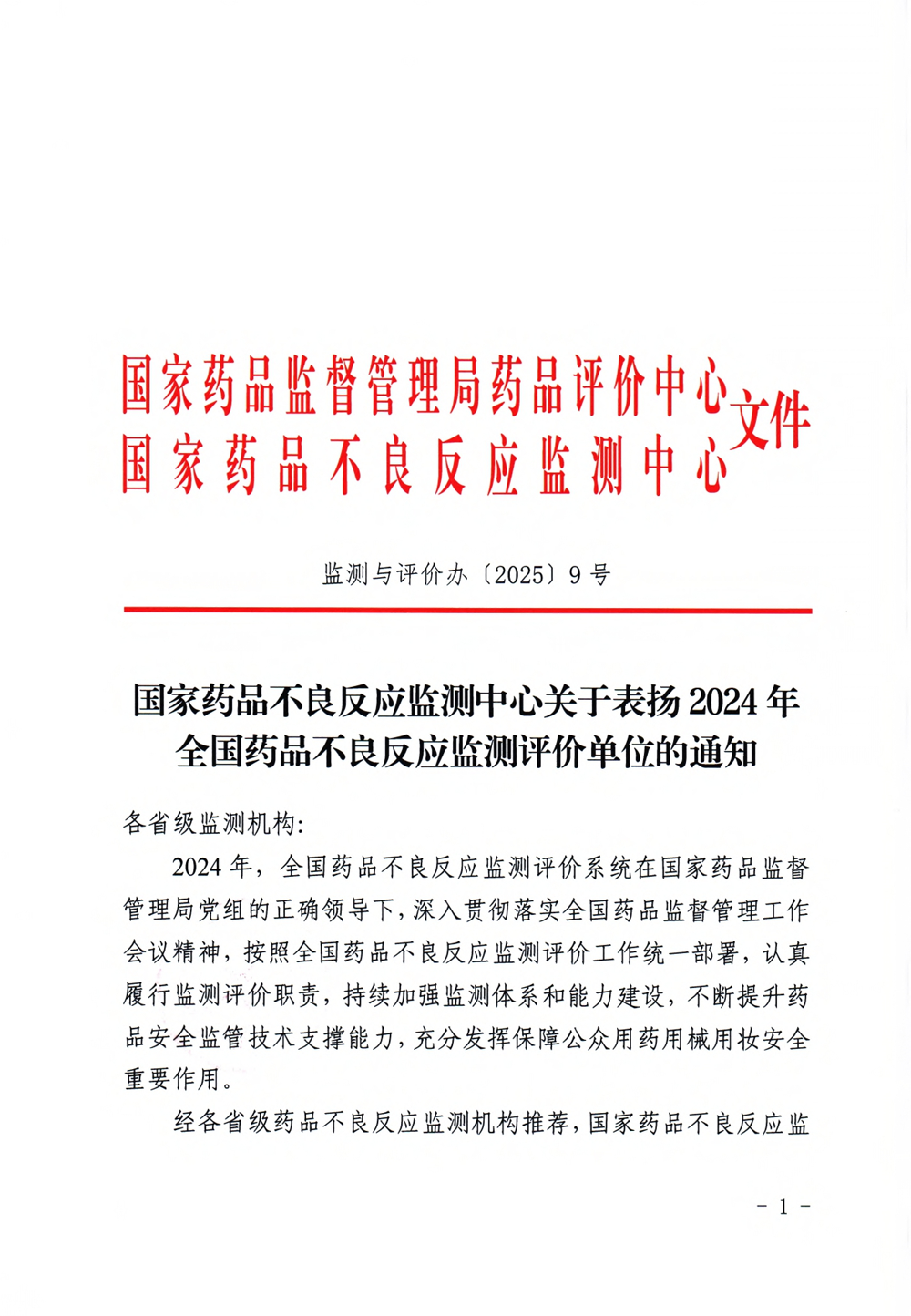 近日,国家药品不良反应监测中心印发《关于表扬2024年全国药品不良反应监测评价单位的通知》(监测与评价办〔2025〕9号),对2024年全国药品不良反应监测评价工作中表现突出的单位予以通报表扬。敷尔佳始终积极响应并高效履行主体责任,凭借在药品不良反应监测工作中取得的显著成就,荣获此项国家级表彰。下一步,我们将以此为契机,贯彻执行全国药品不良反应监测评价工作的整体布局与指导方针,坚定不移地履行好监测评价的法定职责。